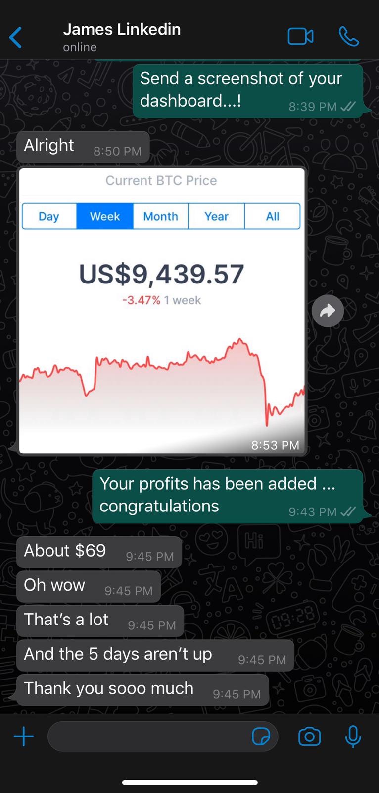 Note:This investment is completely discreet and youโre not giving your funds or anything to anybody. Itโs a process you can start and control yourself. But you will have to purchase bitcoins to your wallet which would be the investments.